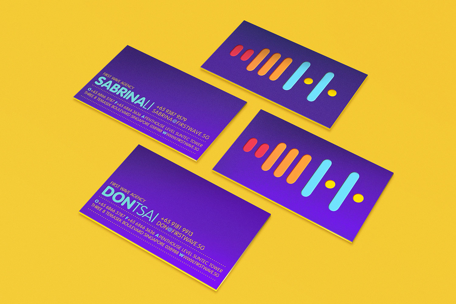 “We were approached by First Wave Agency to help develop their identity system. Being in the events industry, their business relate closely to sound and music. The proposed identity is a stylized sound wave logo derived from the actual alphabets from their name, using an alphabetical grid. The system was applied to the rest of the branding collateral.”